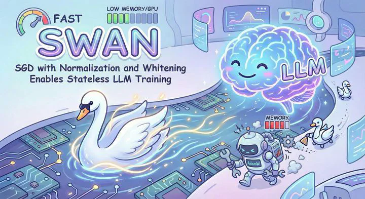 ๐ฅณ๐ฅ Our paper SWAN:SGD with Normalization and Whitening Enables Stateless LLM Training has been accepted in ICML 2025 conference. This optimizer allows stateless LLM training to maximize the memory efficiency, while achieving on-par or better performance than standard AdamW optimizer. ๐ฅณ๐ฅ